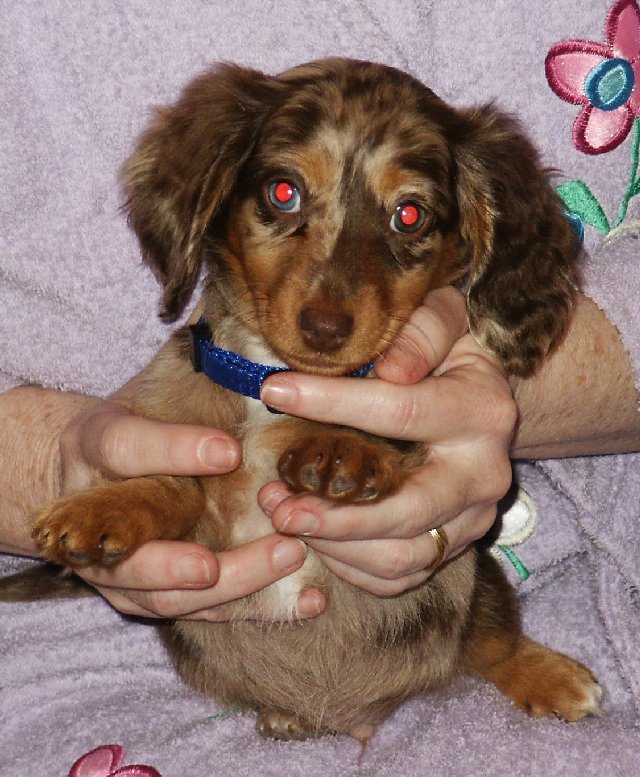 Weasel... Need I say more... (A long haired mini dachshaund)